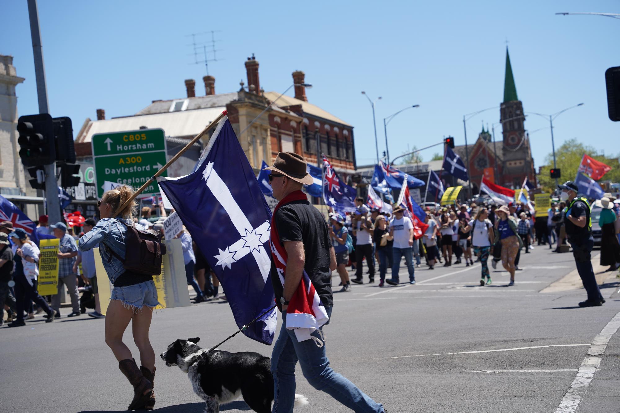 The gold rush city was the historical home of the Eureka stockade. The Eureka flag, a symbol of a miner's rebellion from the 1800s, has been used as a symbol of defiance by anti-lockdown protesters.