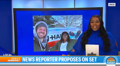 Cornelia Nicholson, who works for WRBC Local3 based in Tennessee, was seated at a desk in the studio reading out her lines when the copy changed and she found herself introducing her boyfriend.